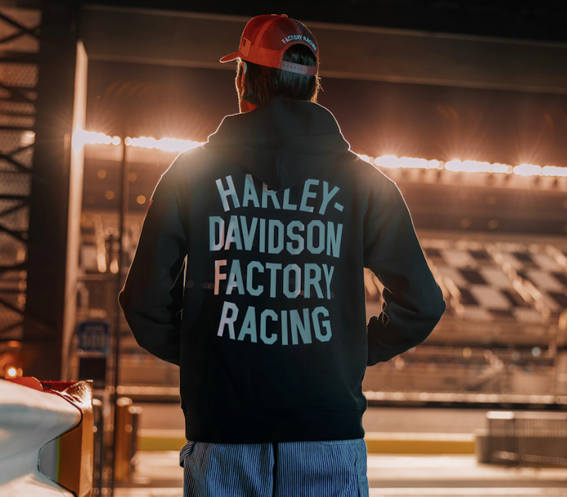 В этой толстовке ваш стиль переживает ностальгический триумф. Толстовка Factory Racing Fanwear унисекс изготовлена из прочного и дышащего хлопкового французского трикотажа (460 г/м²) свободного кроя. Она имеет вместительный карман-кенгуру, капюшон с подкладкой и ребристую отделку, которая помогает сохранять форму. Яркая графика отсылает к нескольким эпохам гонок HD.