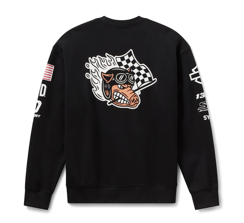 Изготовленный из прочного и дышащего хлопкового французского трикотажа (460 г/м²), свитшот Factory Racing Fast Johnnie Crewneck унисекс обеспечивает свободный крой. Он имеет выдвинутые вперед плечи, декоративную строчку и ребристую отделку, которая помогает сохранять форму. Завершает образ эффектное сочетание графических элементов, отдающих дань уважения нескольким эпохам гонок Harley-Davidson.