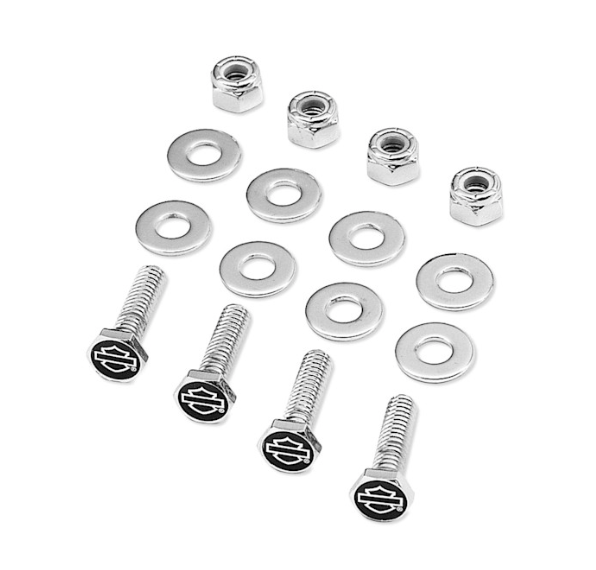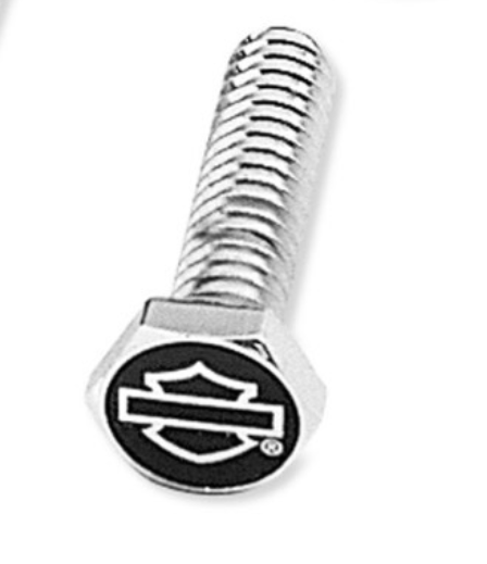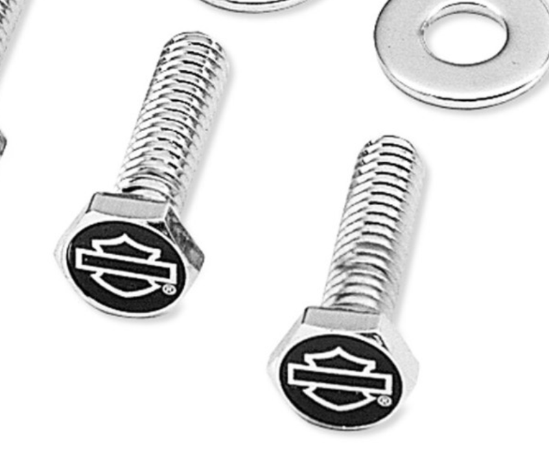 Этот хромированный комплект болтов украшен изображением Bar & Shield на глянцевом черном фоне.